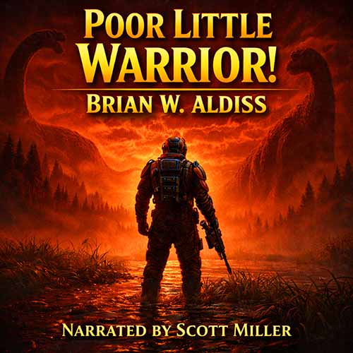 Listen to Poor Little Warrior! by Brian W. Aldiss — a razor-sharp vintage science fiction short story that challenges courage, ego, and survival in a hostile world.