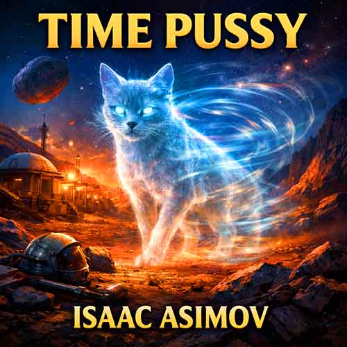 Before there were robots, psychohistorians, or galactic empires, there was an old miner named Mac spinning yarns about “time pussies.” Sitting in his shack after the Asteroid Rush of ’37, he tells a wide-eyed listener about the strangest pets ever discovered — small four-dimensional creatures whose bodies stretched through time itself. Stroke their heads today and they wag their tails tomorrow. Hear them yowl at burglars a full day before trouble arrives. And, inevitably, watch greed and misunderstanding doom them to extinction. Time Pussy takes the form of a tall-tale told with frontier charm, comic absurdity, and genuine melancholy.